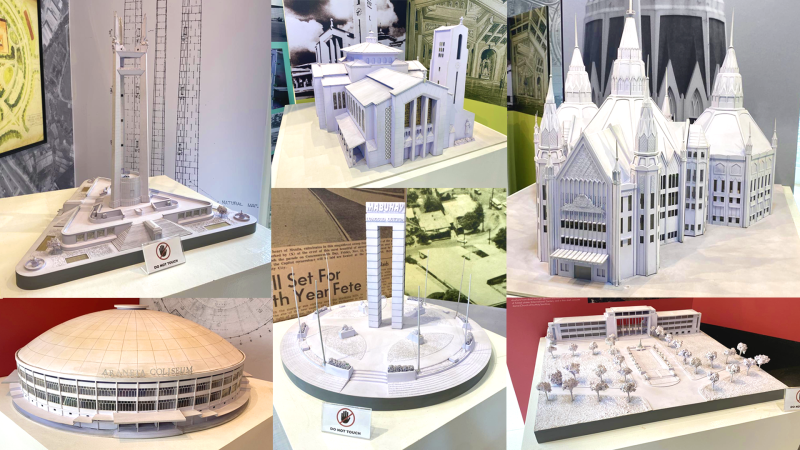 At its far end, Bahay Modernismo opens to a display of Quezon City’s most iconic landmarks in miniature. The Welcome Rotonda, the Quezon City Memorial Shrine, the Santo Domingo Church, the Araneta Coliseum, the entry to the University of the Philippines Diliman, and the Iglesia ni Cristo Central Temple stand side by side in scale model form, offering visitors a condensed tour of the city’s history and architectural legacy.