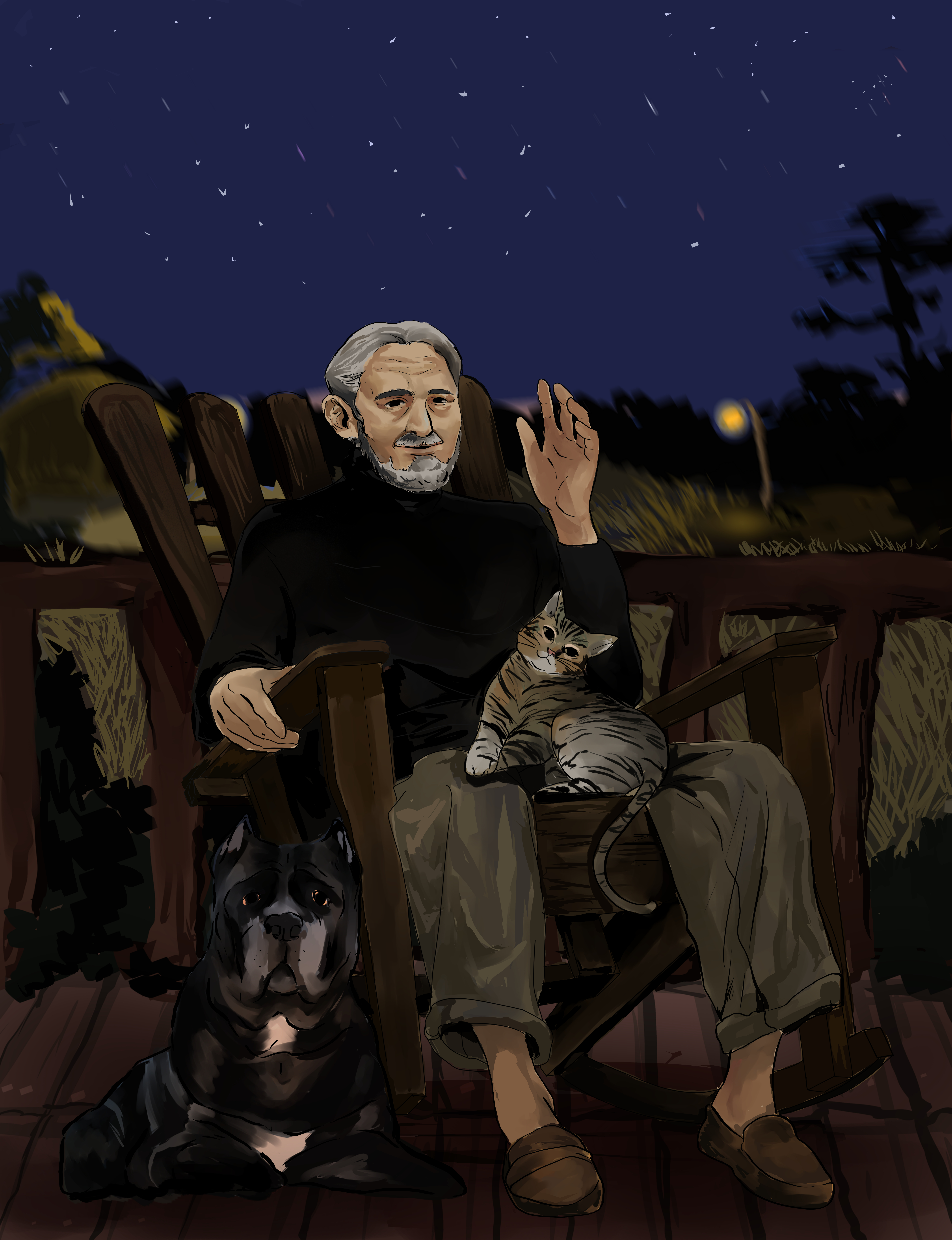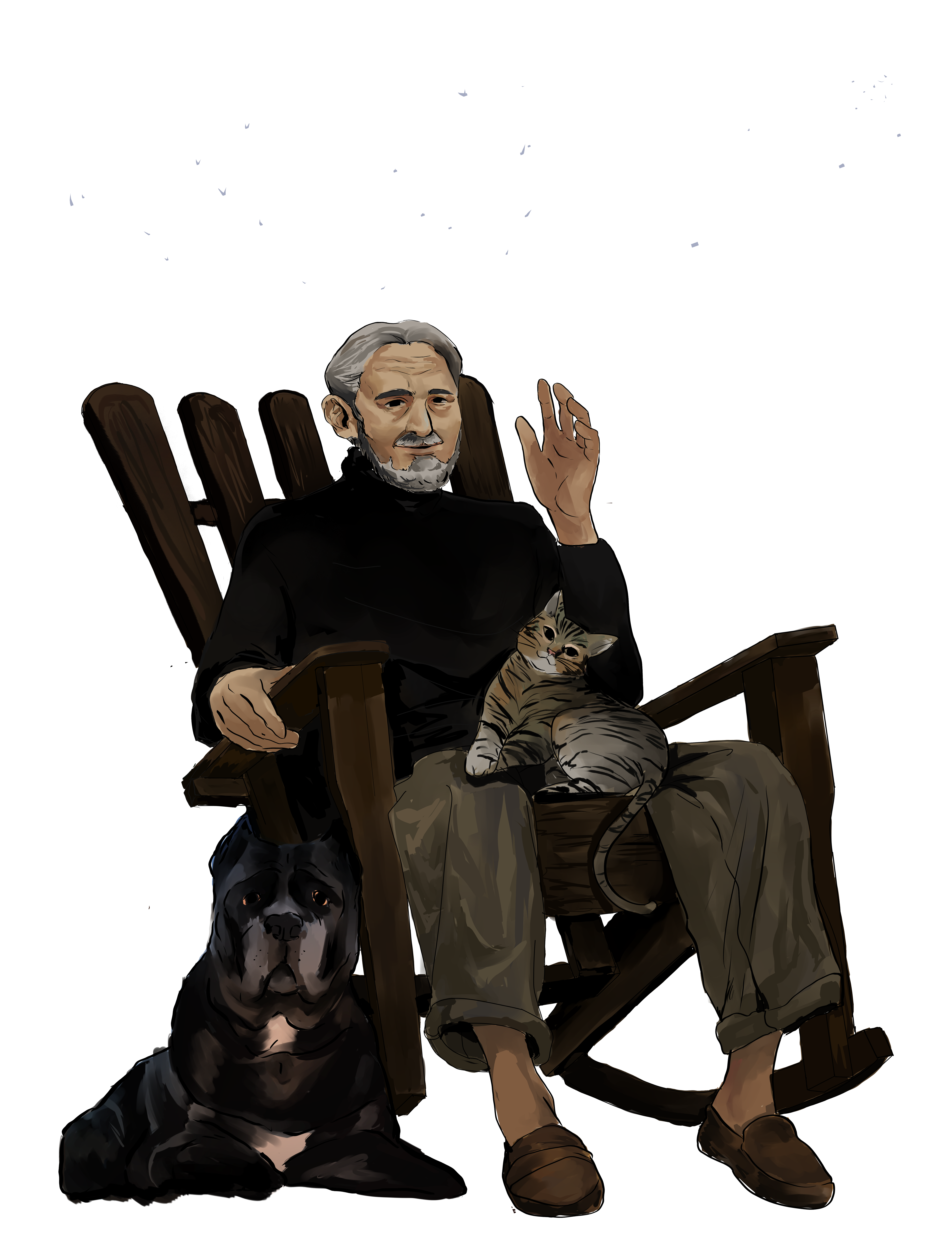 From a client's request. She's an author based in Cebu. She wanted an illustration of the 3 characters in celebration of her first published book. ? Here's a summary of my client's story: Dante, a Cane Corso dog lives with his beloved owner Eugenio, a farmer from southern Italy. One day, Eugenio buys a tabby cat named Giulietta at a town fair. Soon Giulietta is spending more time with the master than Dante which starts a war between cat and dog to win over their master's affections.