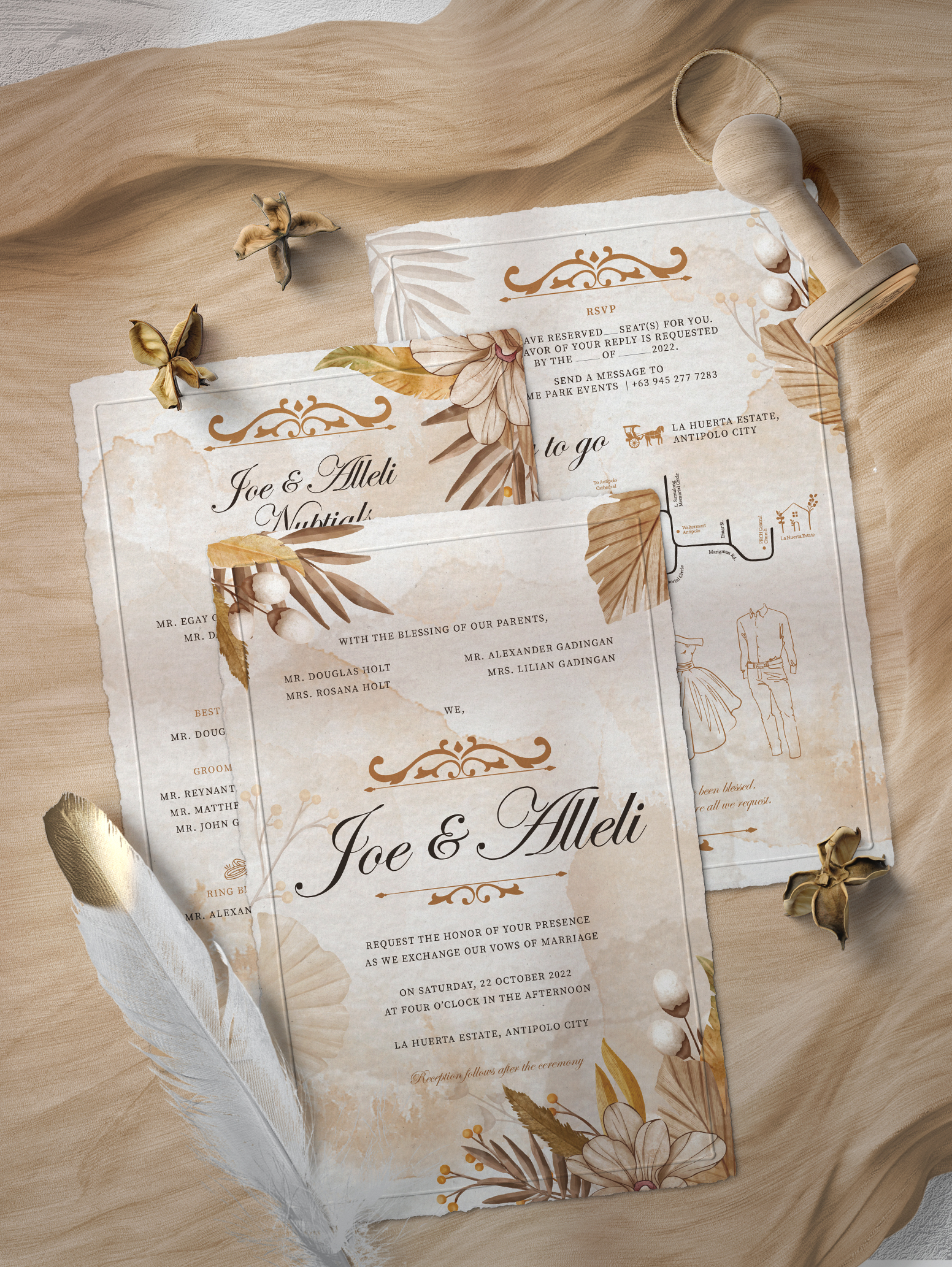 Joe & Alleli Wedding Invitation By Lei Estanislao July 26, 2022 SHARE IN SOCIAL Rustic yet classy filipiniana-themed wedding invitation. A combination of hand-painted watercolor background with decorative floral elements in an earth tone palette.